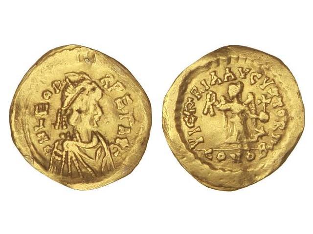 Trémisis. - (457-474). - LEÓN I. - CONSTANTINOPLA. - Anv.: D. N. LEO. PERPET. AVG. Busto con coraza y diadema a derecha. Rev.: VICTORIA AVGVSTORVM. En exergo: CONOB. Victoria en marcha a derecha con corona y globo, estrella en campo. 1,40 grs. AU. Se-9. MBC-. - -