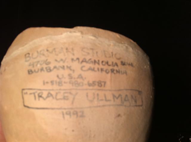 Tracey Ullman Lifecast "The Tracey Ullman Show" - A plaster 1/2 head casting from the award winning show marked on the forehead Burman Studios and their address - Tracey Ullman 1992. These are first generation plaster original lifecasts made from the alginate molds that were on the actor’s faces. Only one casting can be made from the alginate and these are the ones. All subsequent copies were made from these originals. These are the cleanest and highest quality castings made. From the award winning Burman Studios. 14" x 7" x 8"