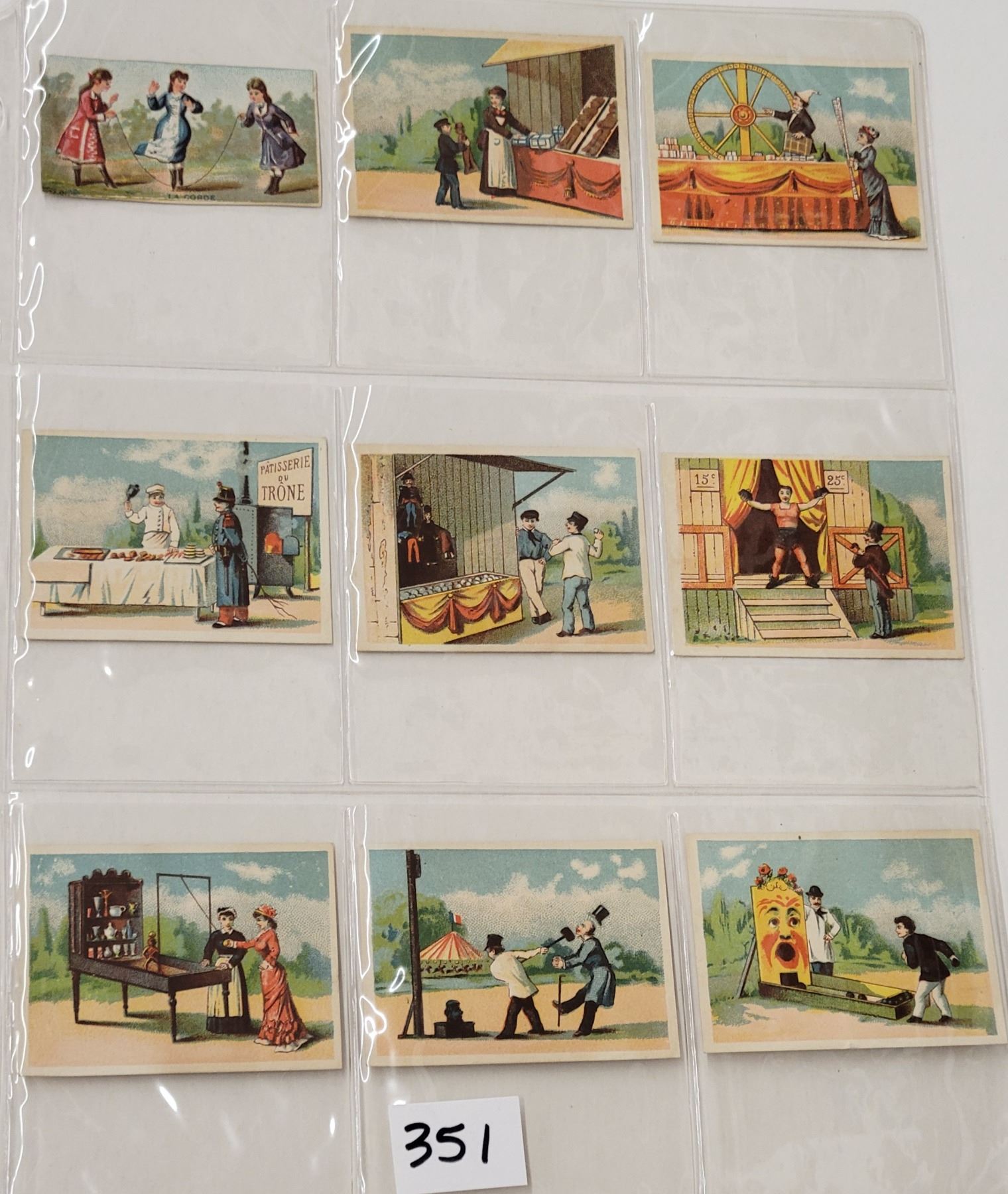 9 carnival game trade cards. Smaller size, blank backs.