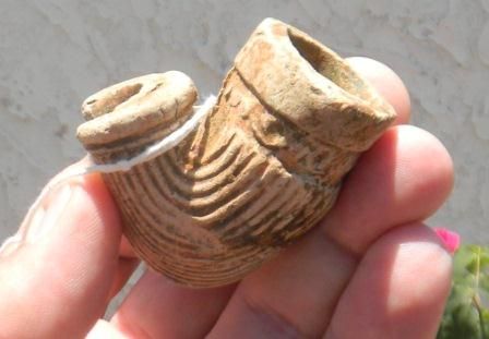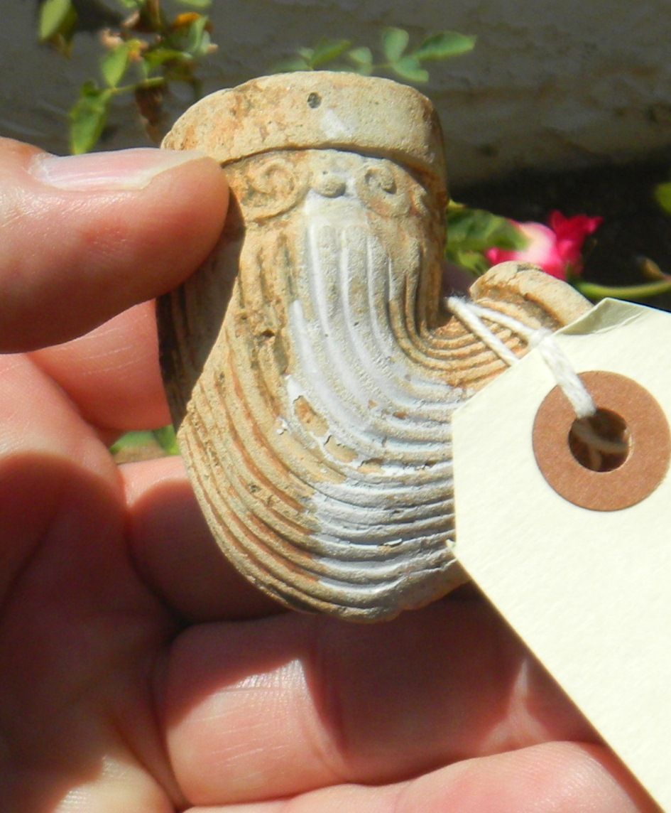 Molded Clay pipe made for trade in the early 1800's, tan clay with engraving approximately. 2x2x1 inch Shipping $12.50