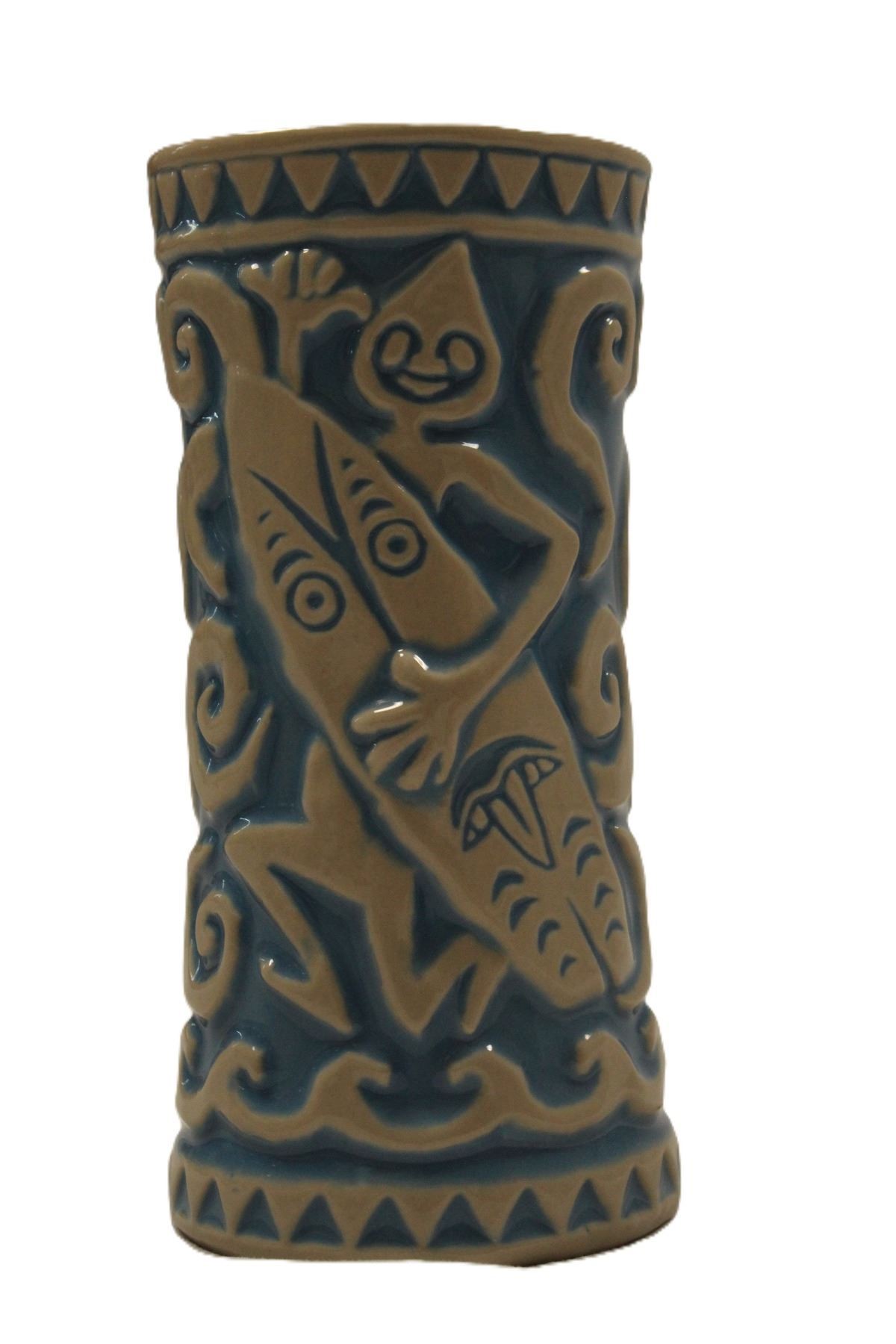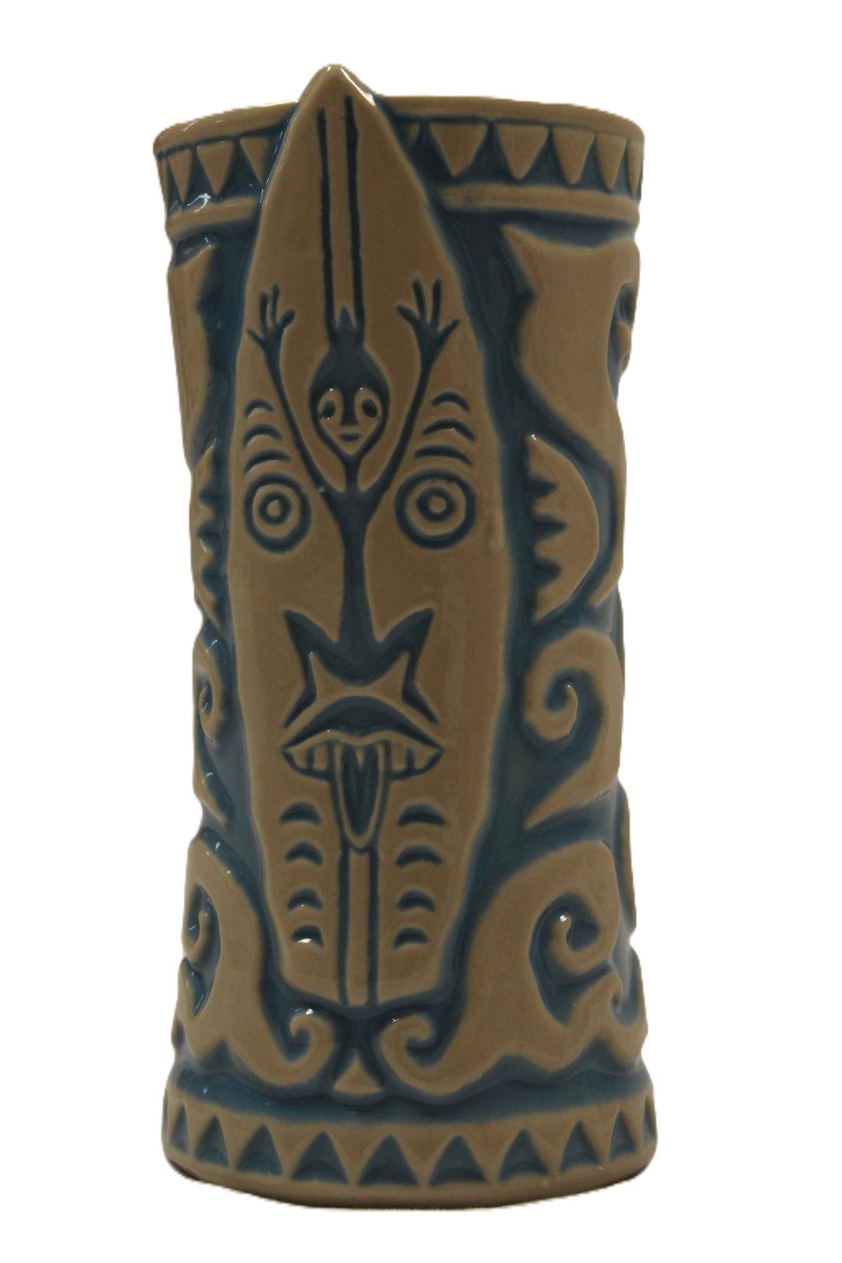 (Disneyland, 2019) A first edition tiki mug from Trader Sam's Enchanted Tiki Bar at Disneyland. Used to serve the Tangaroa Cooler, the tall conical mug is marked with the Enchanted Tiki Bar logo and First Edition on the bottom of the base. It is accompanied by its original cardboard box packaging. Measuring 7" tall and 3.5" in diameter, the mug is in very fine condition being as-new.