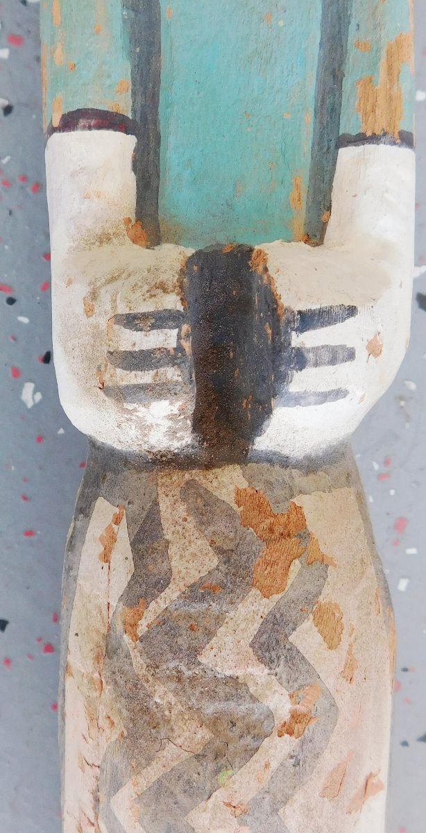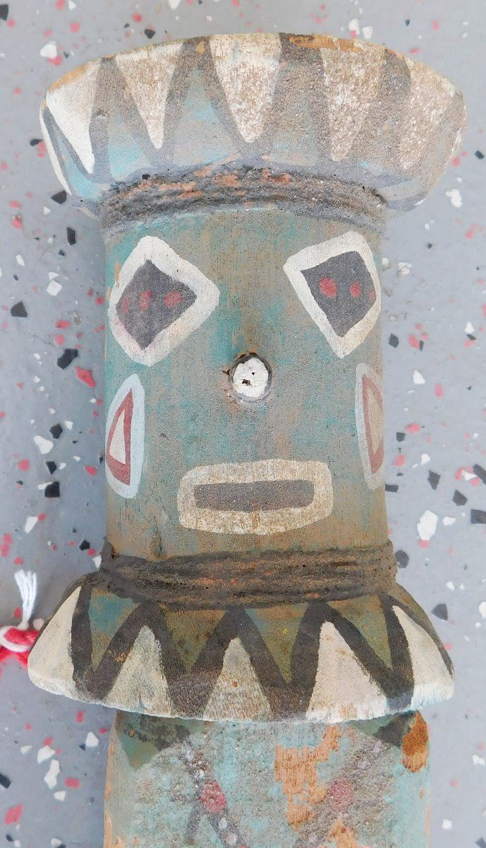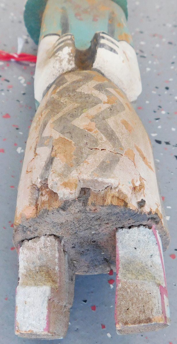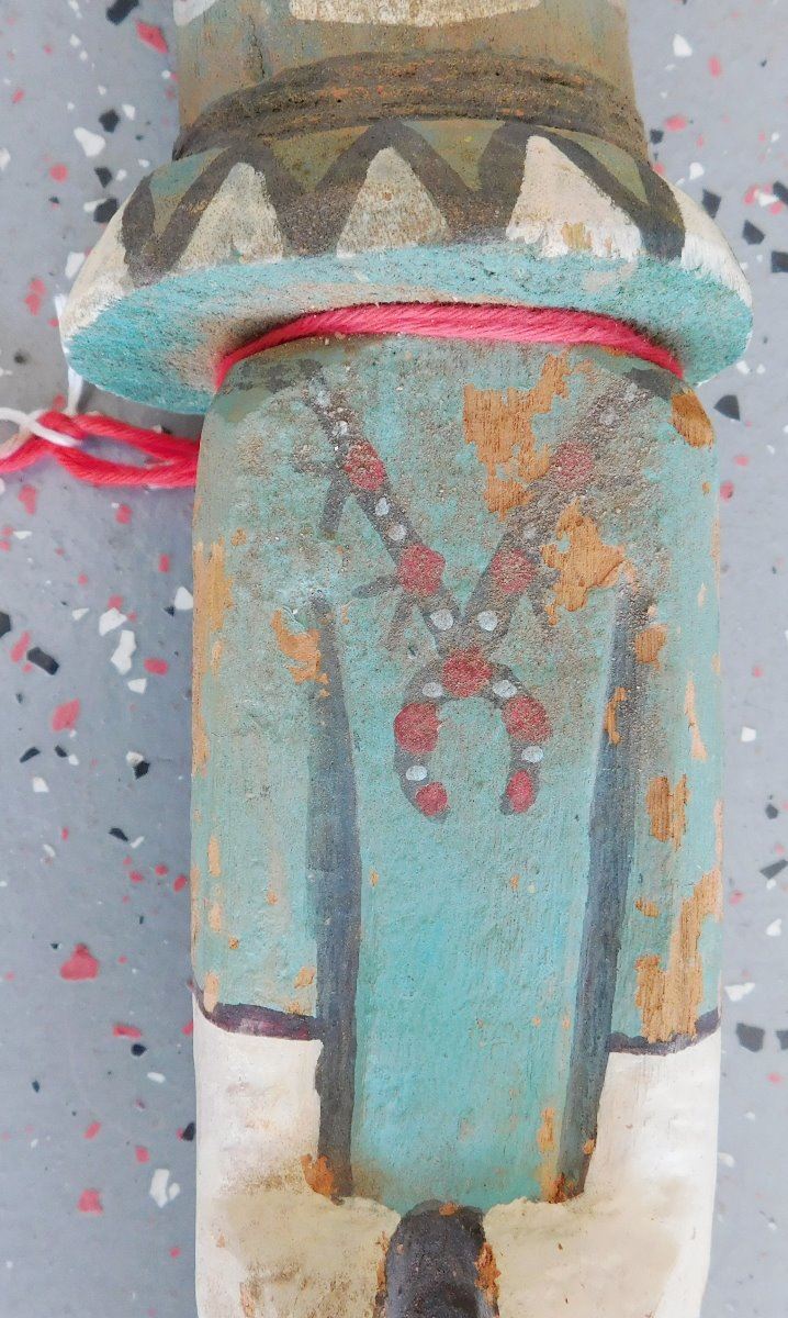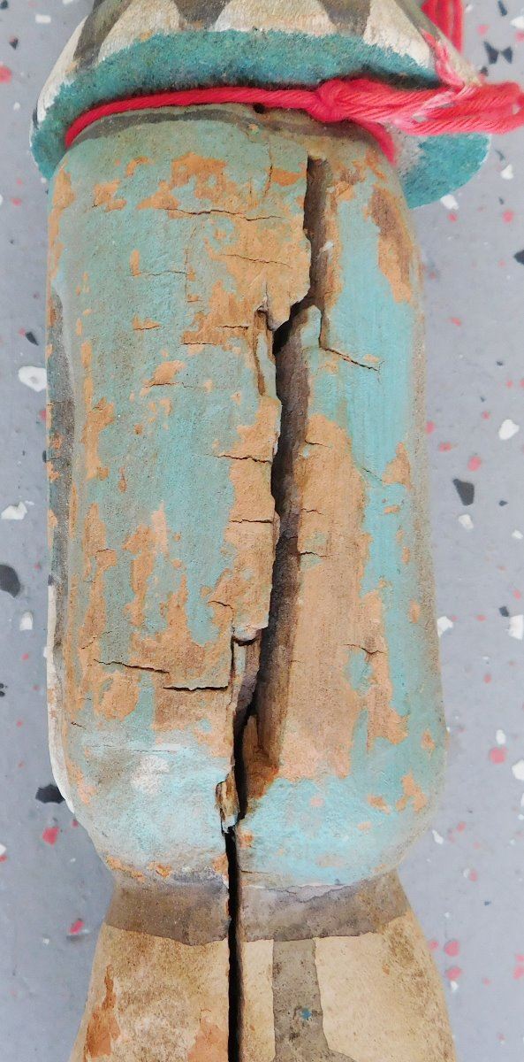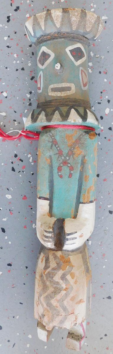 Trading Post Doll, circa 1930s. Made of cottonwood and paint, this item measures 3.5" x 3" x 13.5" tall. Arizona. Condition: Minor chips and paint loss, see images. Shipping: $27.50 w/insurance and signature, due to length.