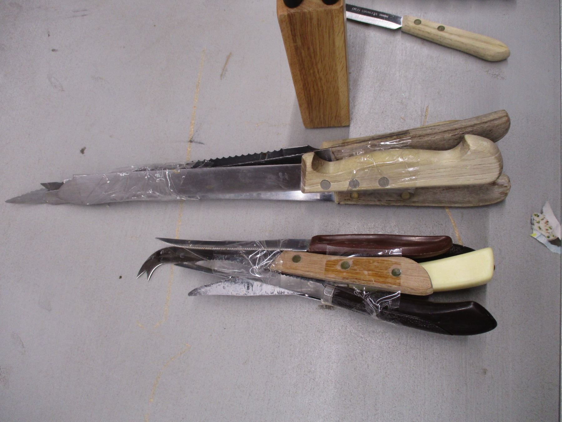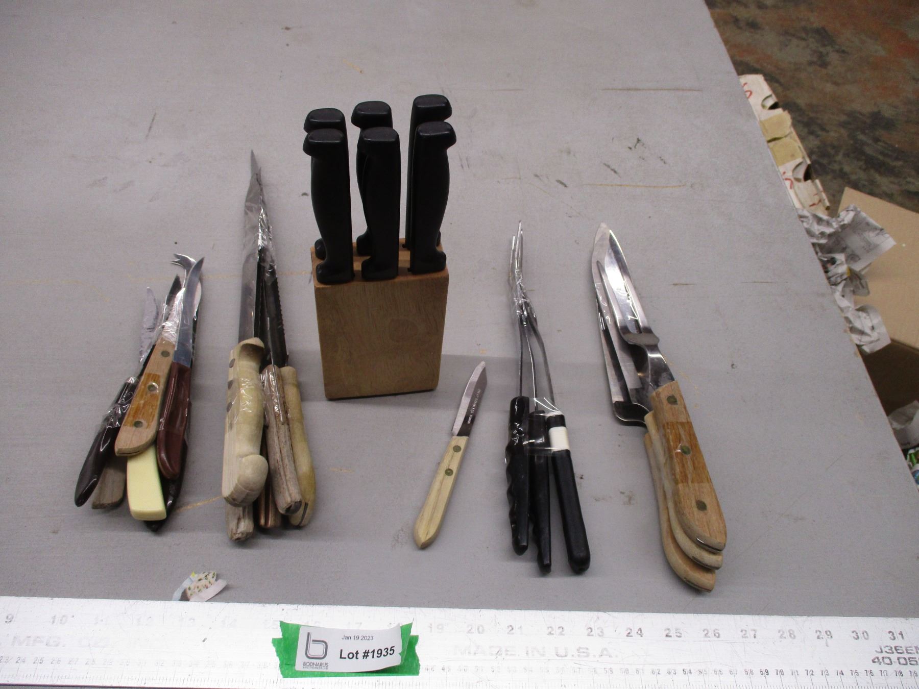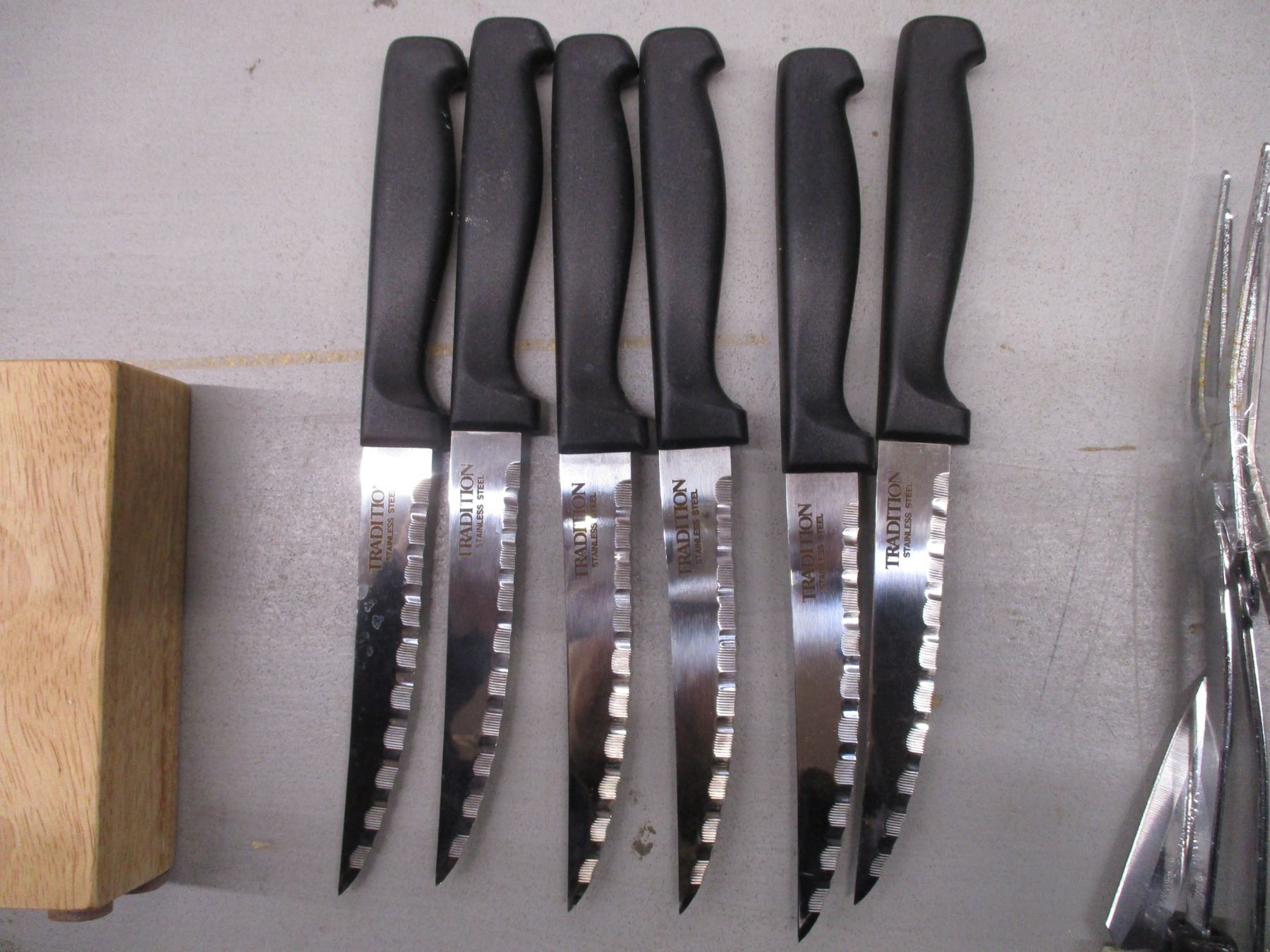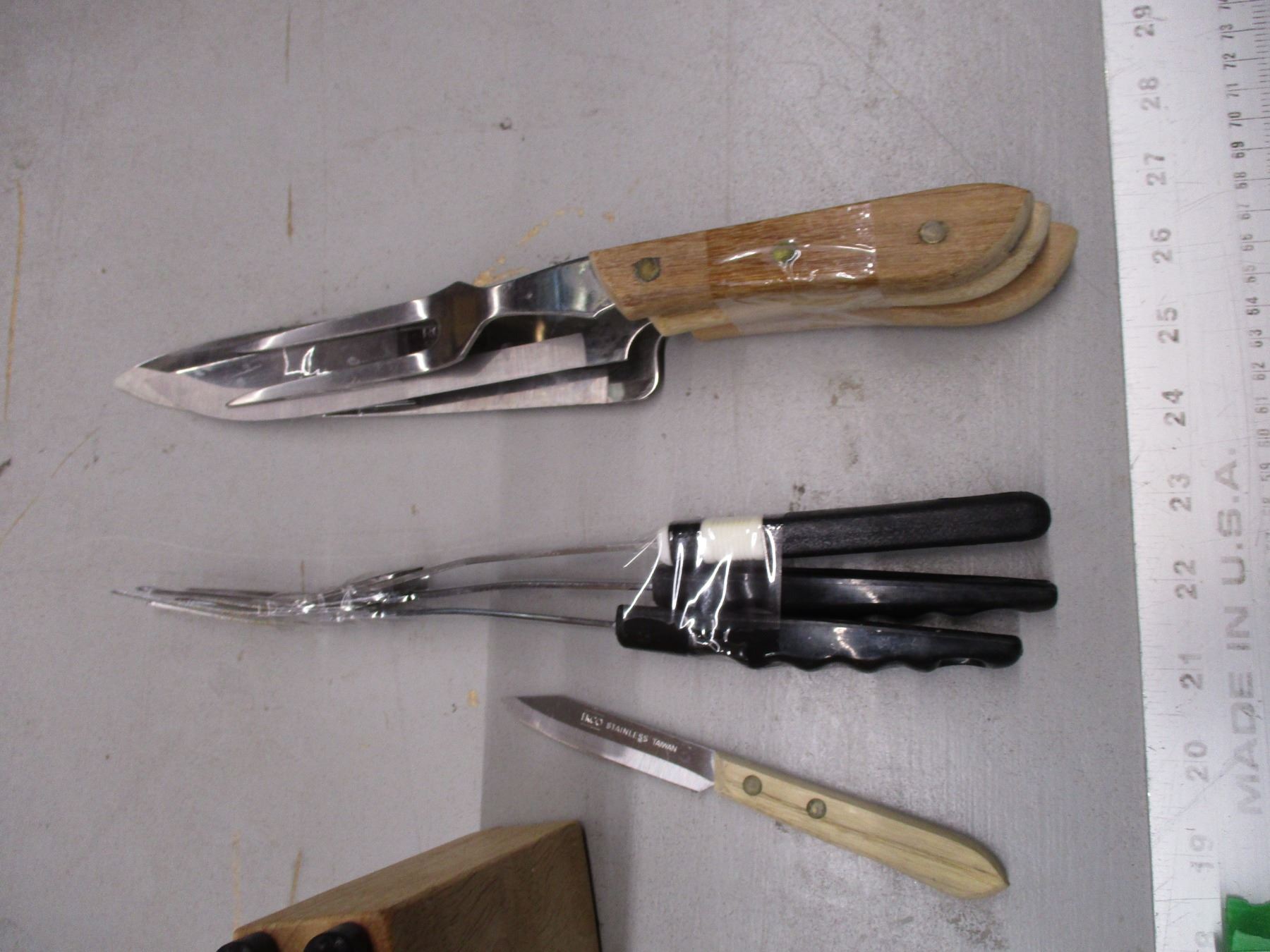 Tradition Knives w/ Block , Butcher Knife, Forks