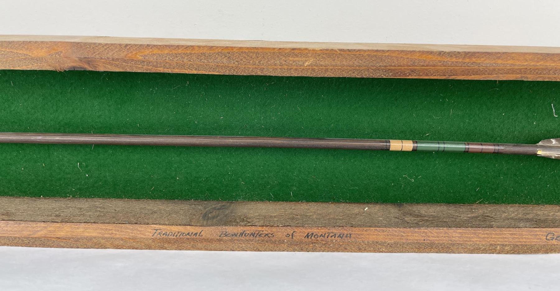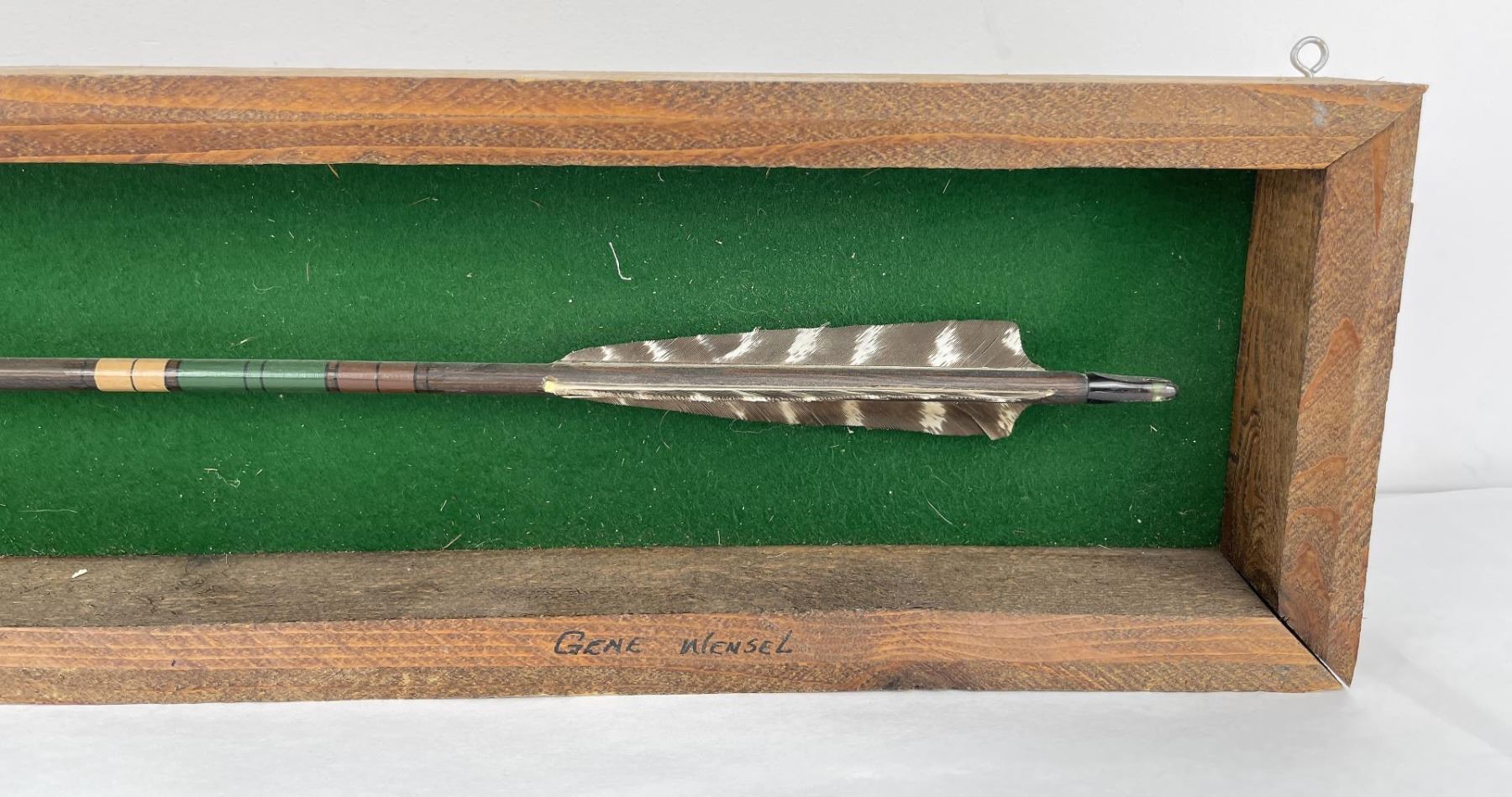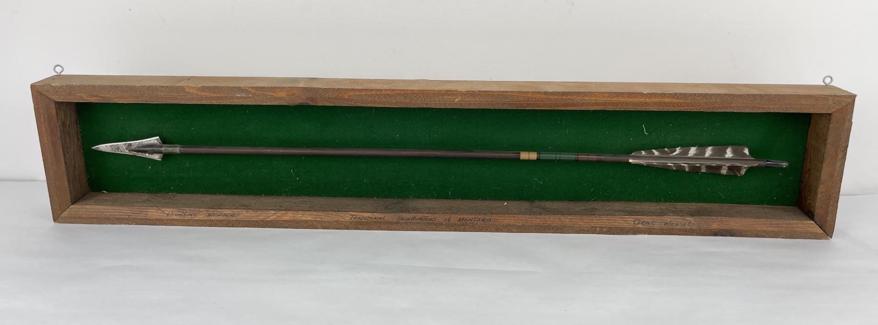 Gene Wensel Collection (Brothers of the Bow). Presented to Gene by the Traditional Bowhunters of Montana. Signed by Gene. Very nice piece. 6.5" by 35.5" framed.