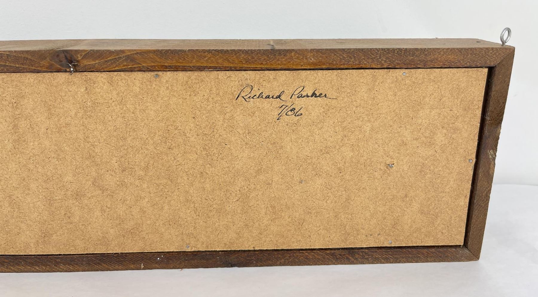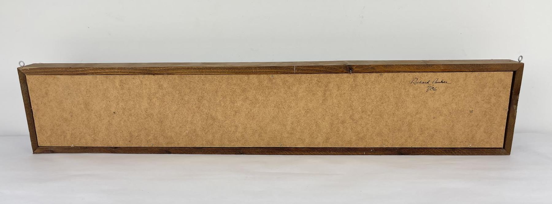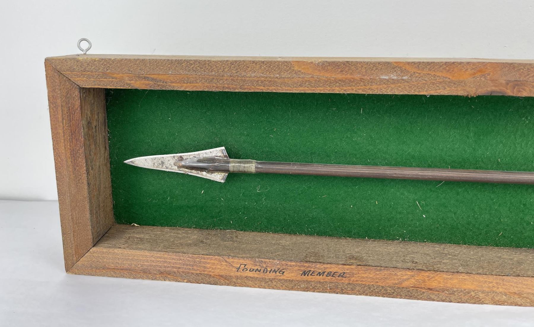 Gene Wensel Collection (Brothers of the Bow). Presented to Gene by the Traditional Bowhunters of Montana. Signed by Gene. Very nice piece. 6.5" by 35.5" framed.