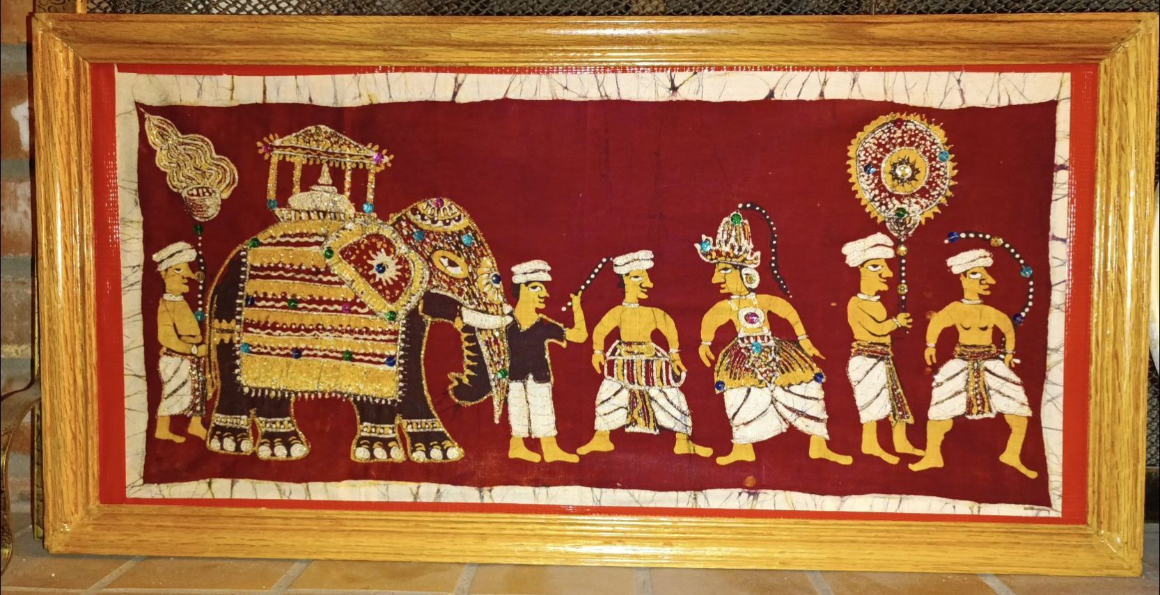 Traditional Festive Elephant Parade Textile Wall Hanging 26" x 12"tall