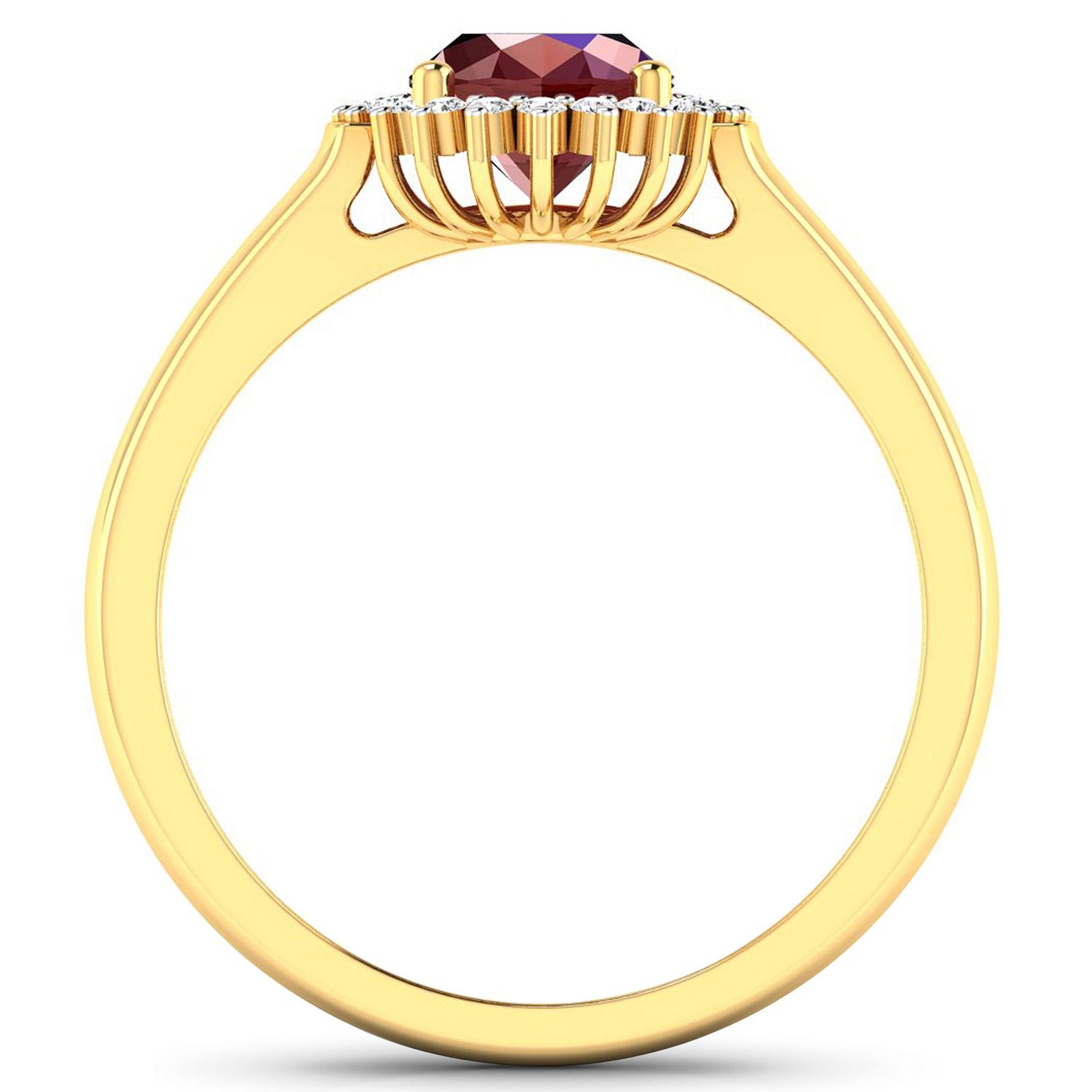 This 14 karat yellow gold ring features a 1.50 carat oval-cut, prong-set, semi-translucent, genuine ruby with .10 carats total weight round, brilliant-cut, H-I color, I1 clarity diamonds in the halo.& nbsp; The gemstones are supported with a ribbed outer gallery and polished, cathedral shoulders that taper from approximately 4.26-2.5mm.& nbsp; The ring is US size 7 and can be sized for an additional charge. Please contact Bidfair Fine Jewelry for sizing details. This is a brand new item, with approved from the manufacturer for sale to the public, by auction. It is in excellent condition, but may have fine scratches from shipping or transportation.& nbsp; Admin: Q741/13gea
