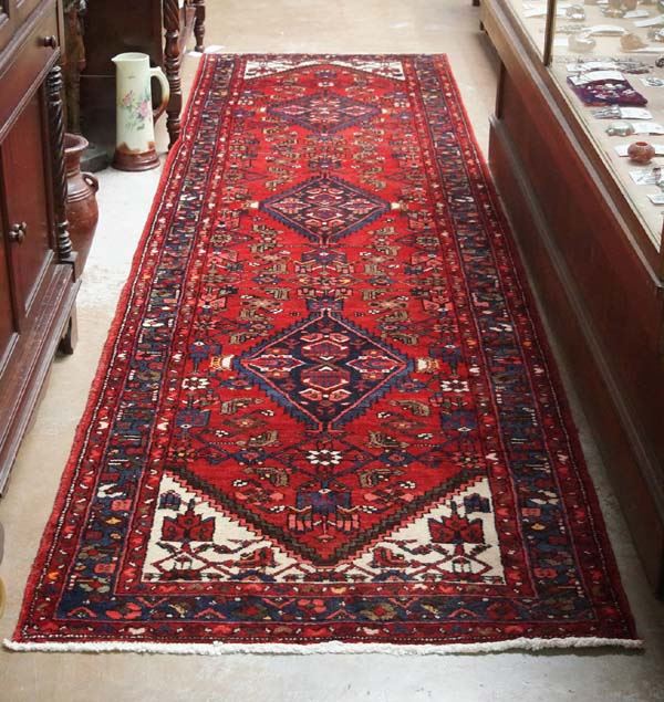Traditional Hamadan Persian Rug Runner, measures 13.2'L x 3.5'W, gorgeous colors