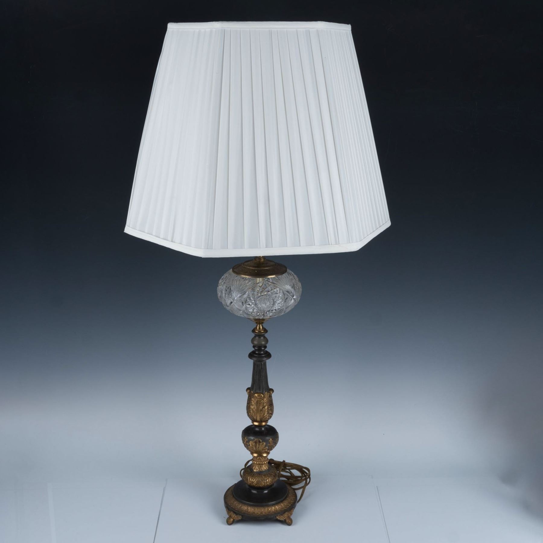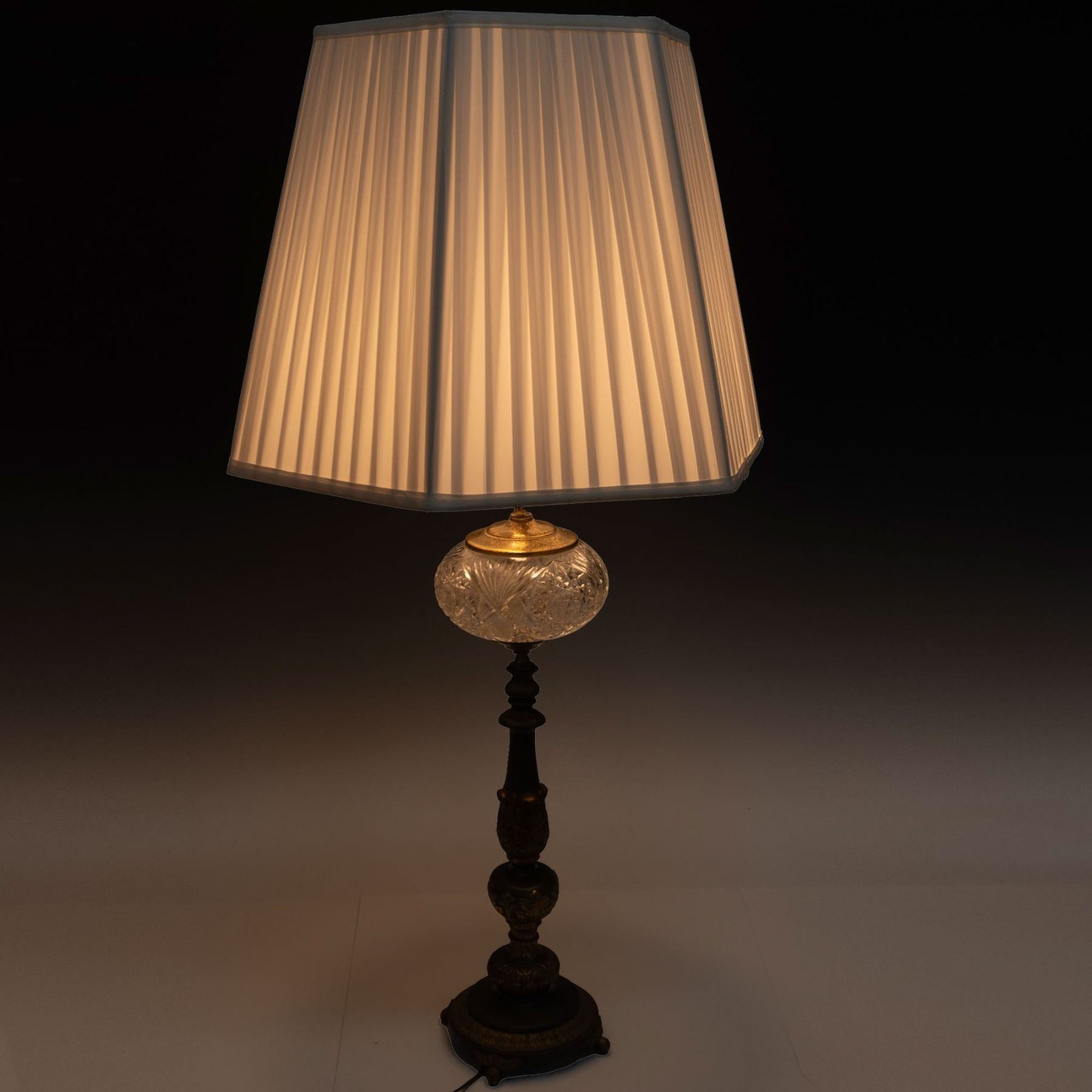 Vintage oil lamp made of brass and glass that has a very retro look and feel, sure to add style to your home. Leviton Made in USA backstamp near turn knob.