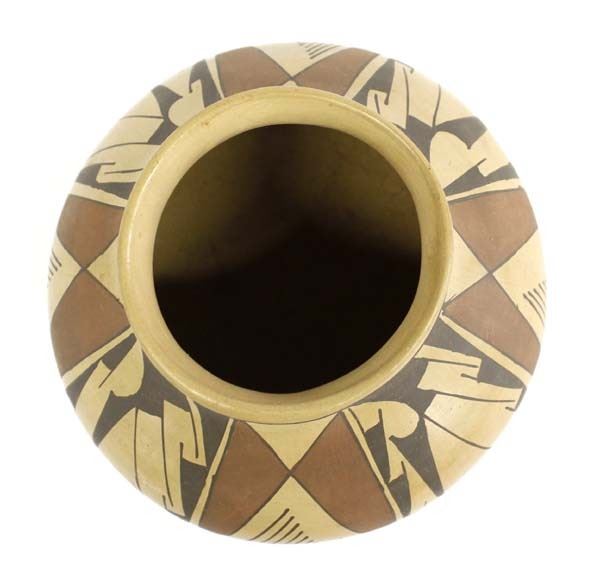 Traditional Vintage Mata Ortiz Polychrome Pottery Jar, measure 6'' x 6'', features Paquime' inspired lines and designs