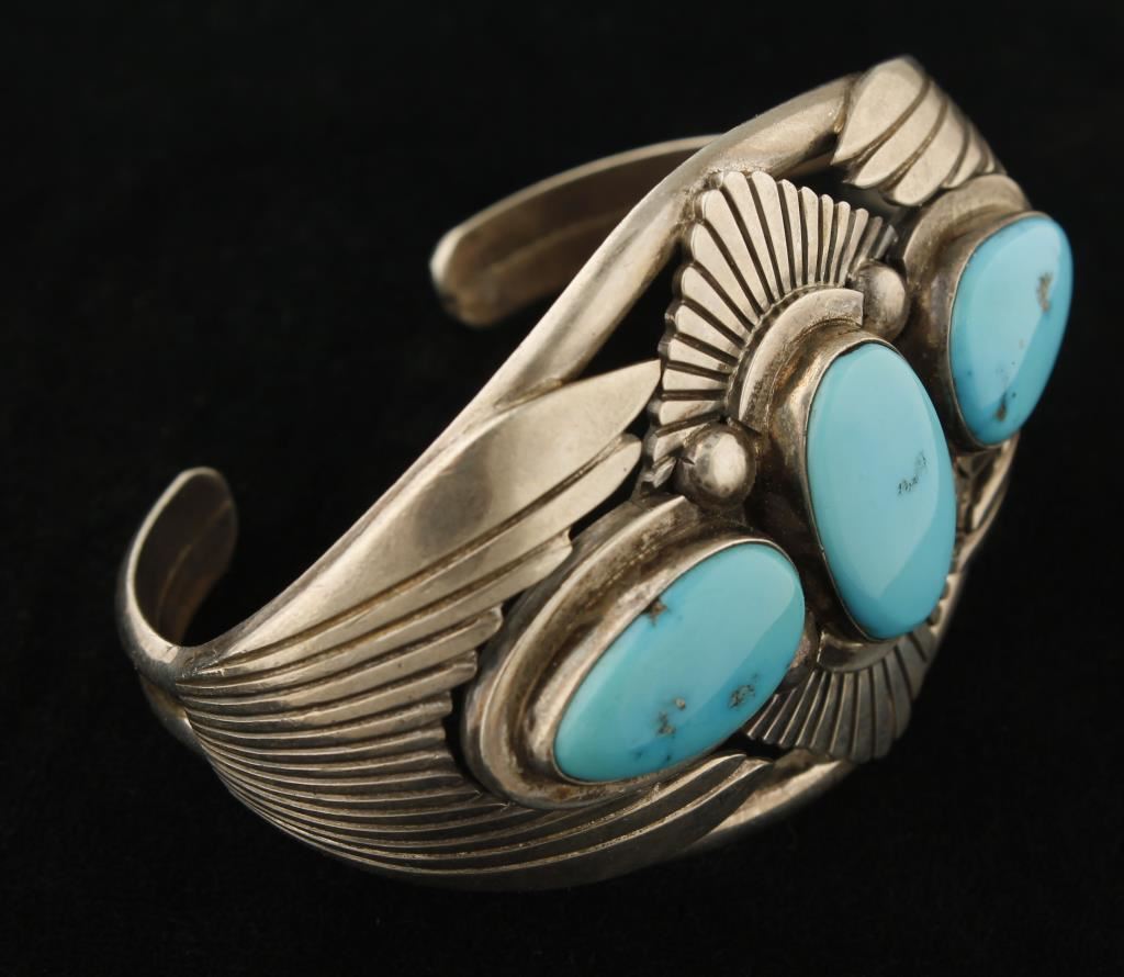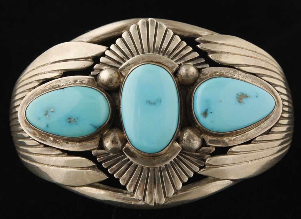 Bracelet. 3 Stone design, set in beautiful sterling silver by noted silversmith H. Gordon. Signed on back.