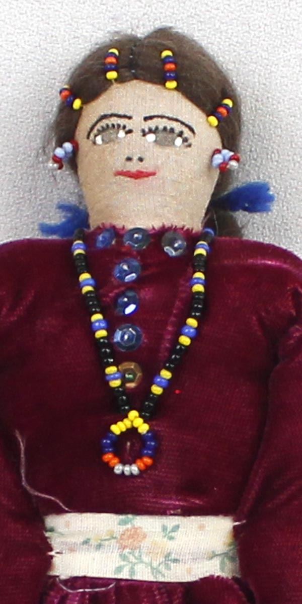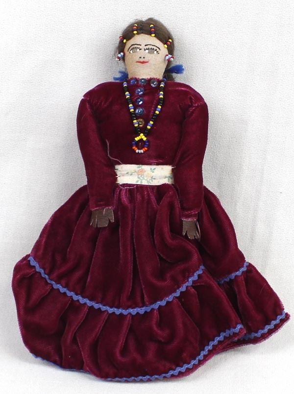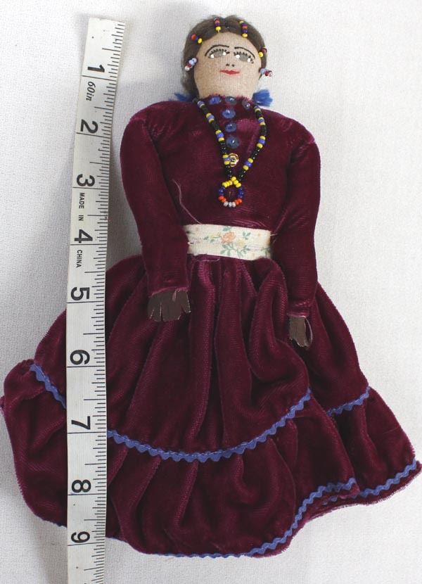 Traditional Native American Navajo Cloth Doll, measures 7"L, embellished with beadwork