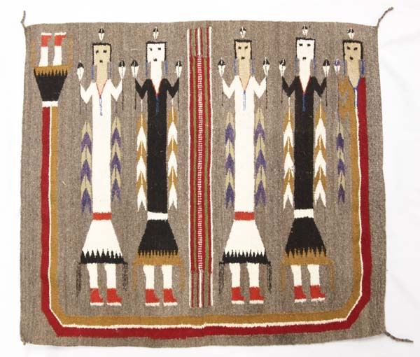Traditional Native American Navajo Yei Bei Chei Textile Rug from Lukachukai Arizona Area, measures 37''L x 34''W, beautiful colors, 4 cornered tassels intact