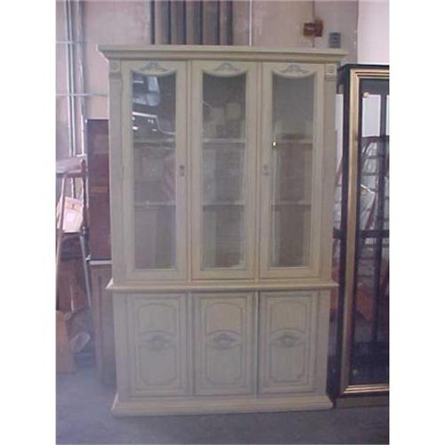 <tr><td>Title:Traditional Tall China Cabinet of Beige/Gray</td></tr>