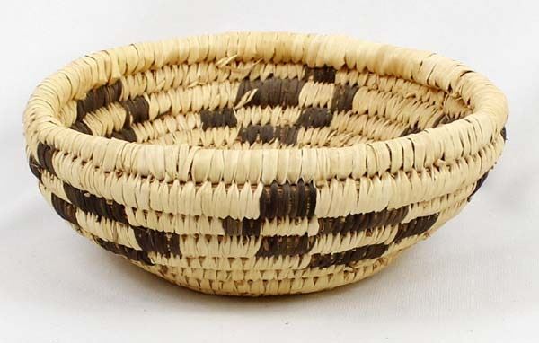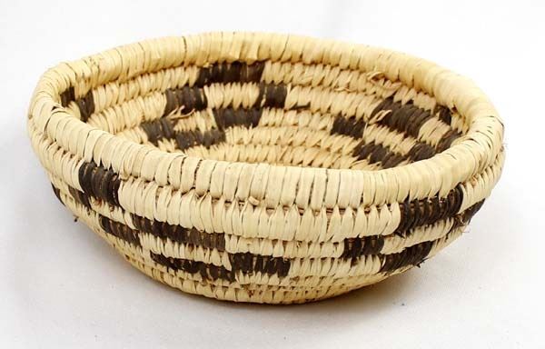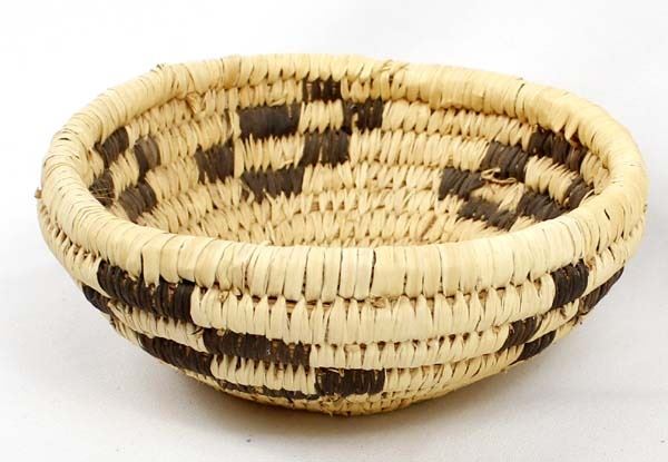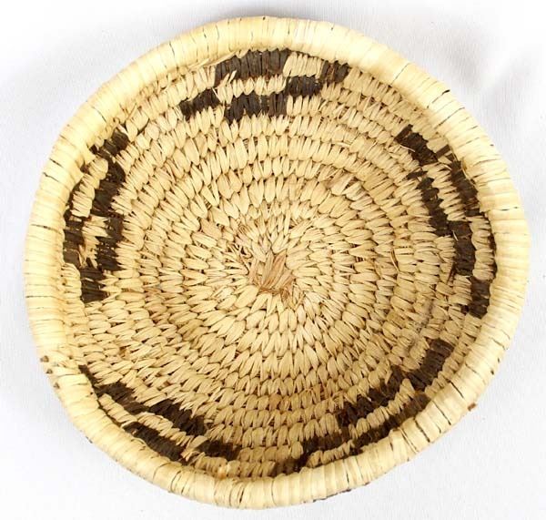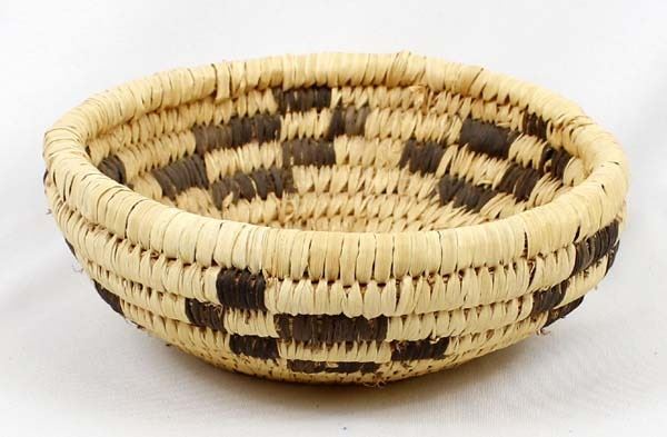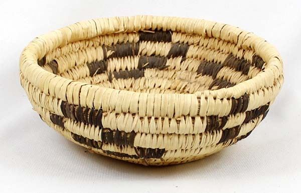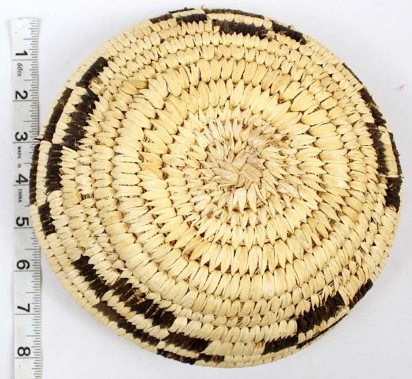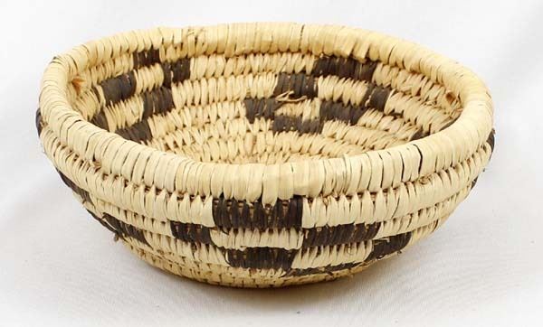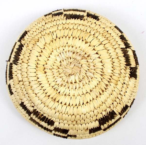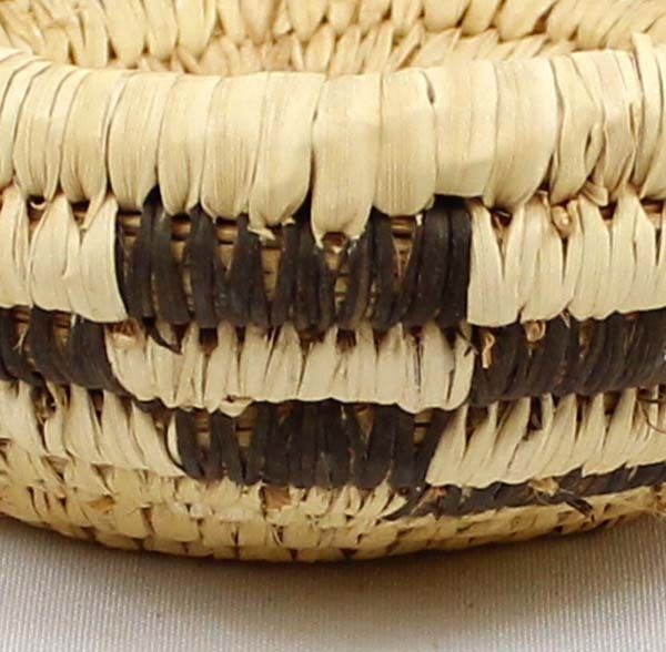 Traditional Native American Tohono O'odham Coyote Tracks Basket, measures 3''H x 8''D, yucca and beargrass
