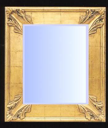 Traditional styled mirror with gold gilt swept frame. Wooden construction (not composite materials) beautiful detailing and bevelled edged glass. Measures approximately 24in x 36in