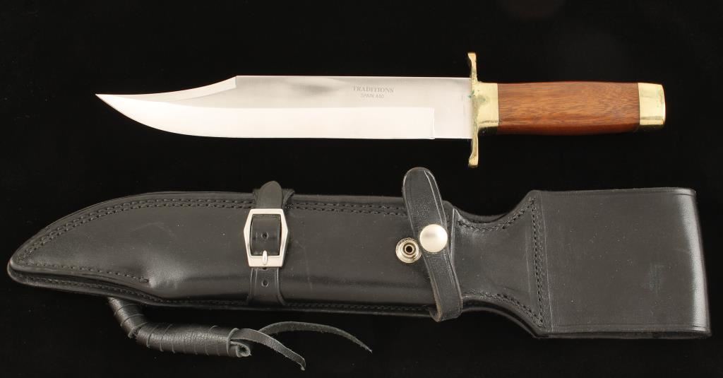 Stainless Steel blade, brass guard, with a black leather sheath by Alfonso of Hollywood Leather Co.