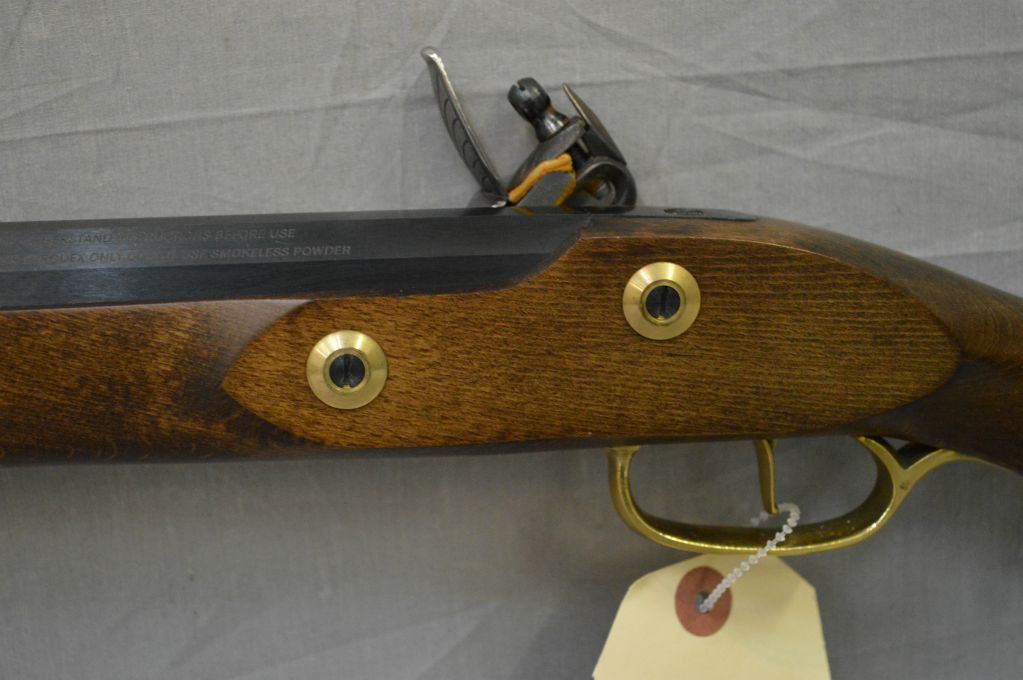 Traditions Model Kentucky .50 Flintlock cal Single Shot Black Powder Rifle w/ 33" octagon bbl [ appears v- good, possibly test fired, blued finish, case colored lock & hammer, full wood stock w/ brass furniture, brass tipped wooden ram rod ] Ser # 14 - 13 - 033837-11 ANTIQUE CLASS NO PAL REQ