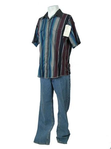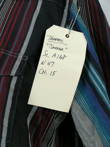 In the dramatic "Traffic" (2000), Benecio Del Toro plays Police Office Javier Rodriquez, who with his partner, tries desperately to put some kind of order into the seemly unstoppable Mexican drug cartel. This is hero stripped collared shirt with blue jeans. Come with the original production wardrobe tab.