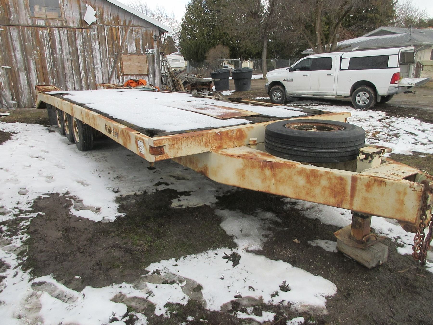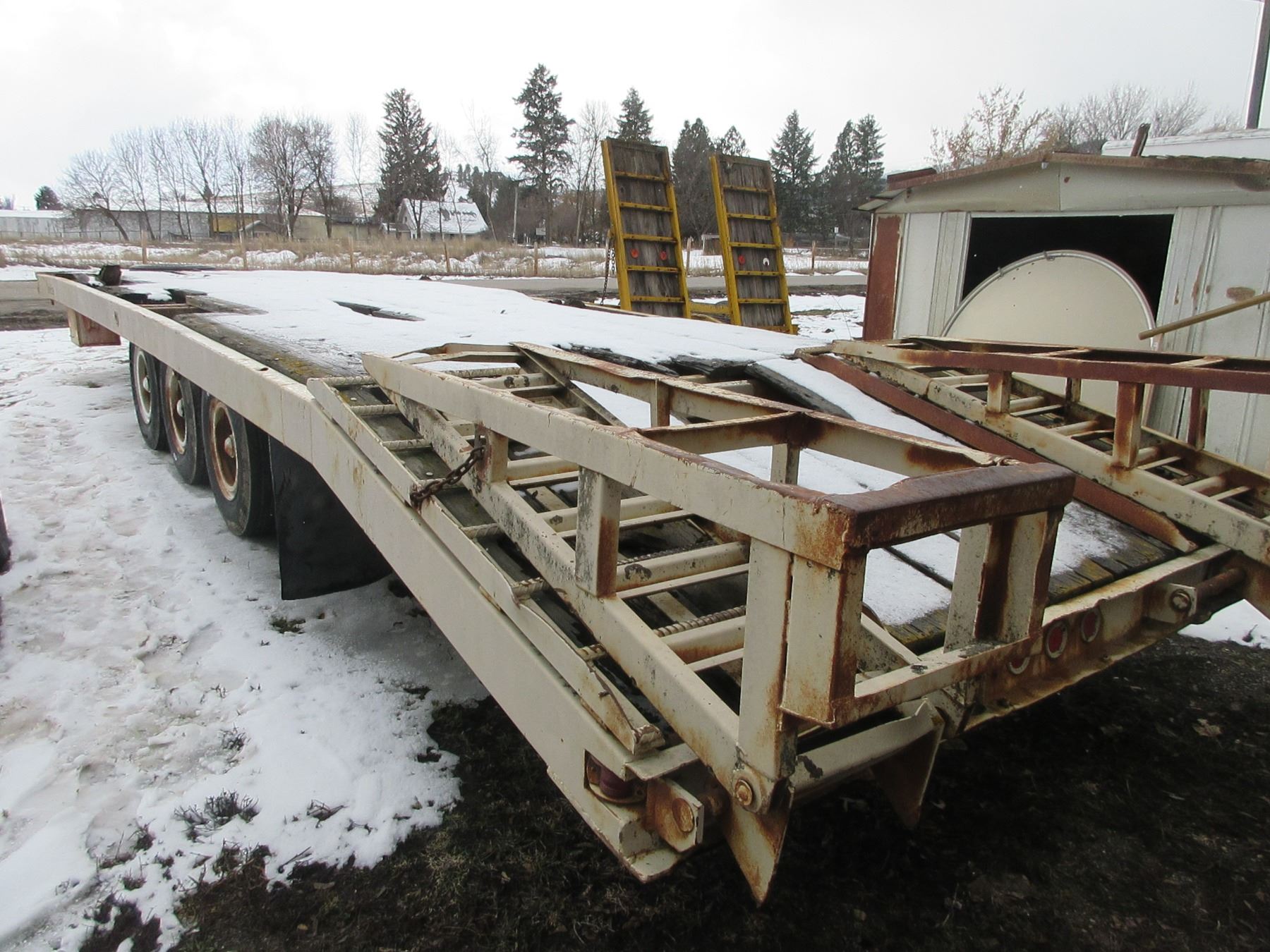 Trail-EZ Triple Axle Flatbed Trailer- 25' X 8'- Ramps- Beaver Tail- Decent Rubber- Spare- Needs Deck- Clear Title- Title In Transit- This Item Is Not Located At The RLP Auction Barn But WILL BE SOLD At The RLP Auction Barn. All Interested Parties May View This Item In Person At 4040 North Ave West, Missoula MT On Preview Day (April 1st). If You Win This Item You Must Pay For It At RLP Auctions And Then Can Go Pick It Up At The Location. With Any Questions Please Contact Mark At 406-239-6367