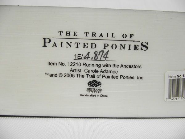 Trail of Painted Ponies Running With Ancestors. This is Item No. 12210 of the series, called ''Running with the Ancestors by Carole Adamec. It is edition number 1E/4,874. It measures 6''Hx8-7/8''Lx2.5''W at the base. In like new condition.