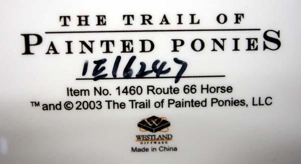 Trail of the Painted Ponies ''Route 66'' by Ellen Sokoloff. This is a retire edition. It is numbered ''1E/6247'' of Item 1460. Made and produced by Westland Giftware. Includes original box. Measures 6''Hx7.5''W. Buyers Pay Actual Shipping and Handling Charges(see terms and conditions for more information).
