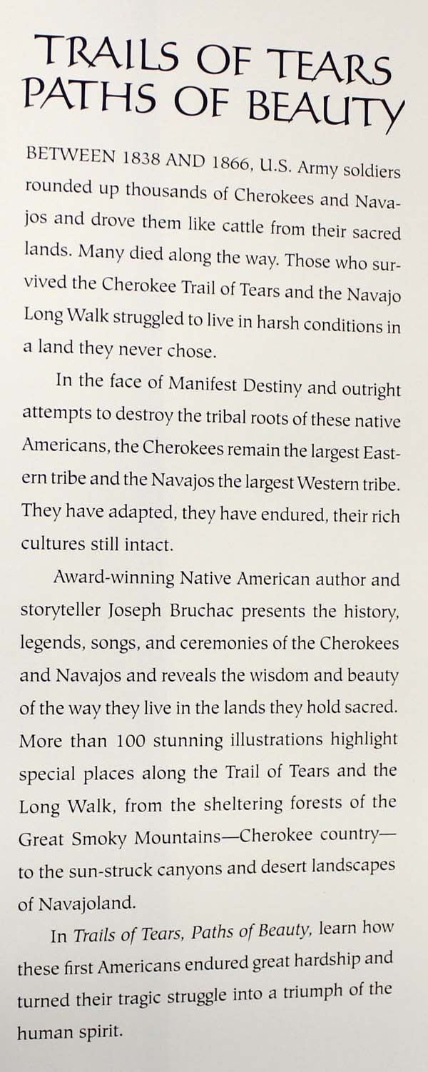 Trails of Tears Paths of Beauty by Joseph Bruchac, hardback book c. 2000 National Geographic: Washington, D.C., comes in original book jacket, like new condition
