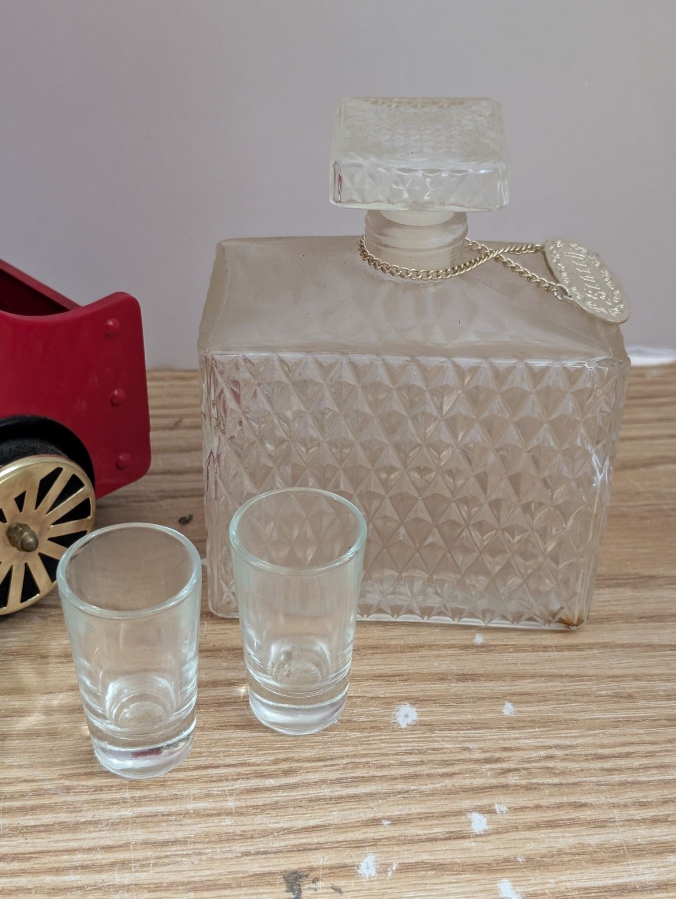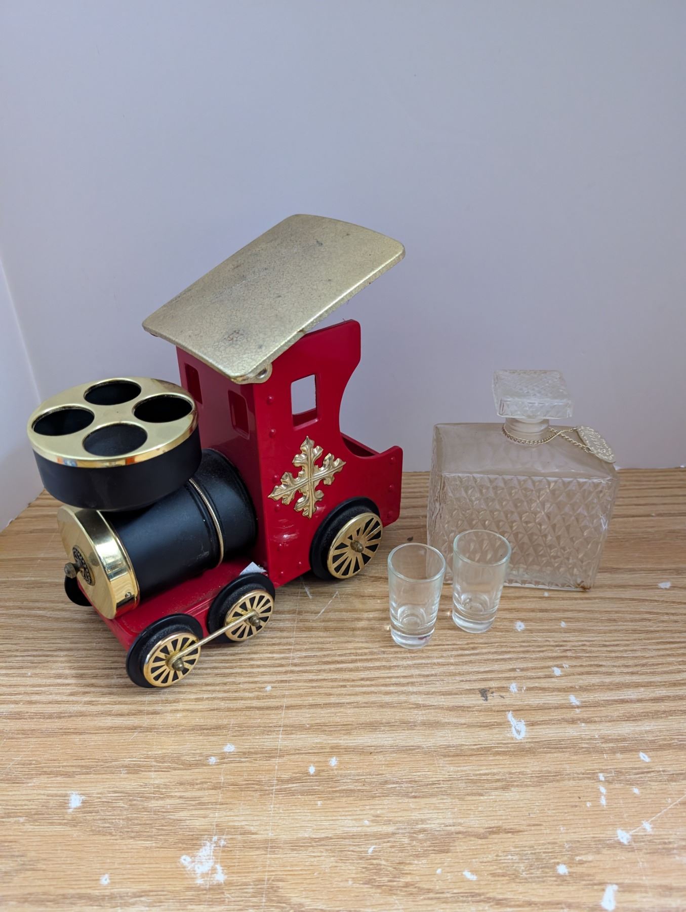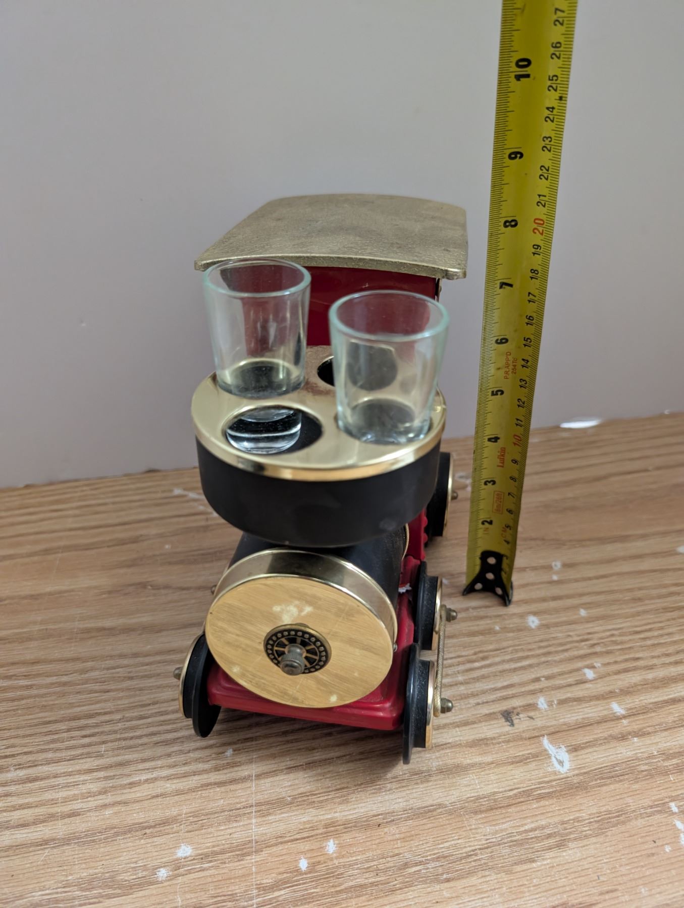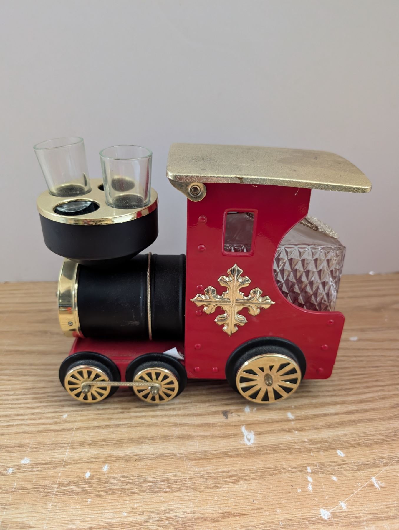 Train Design Music Box (Works) Acts As Liquor Holder (Scotch and Shot Glasses)