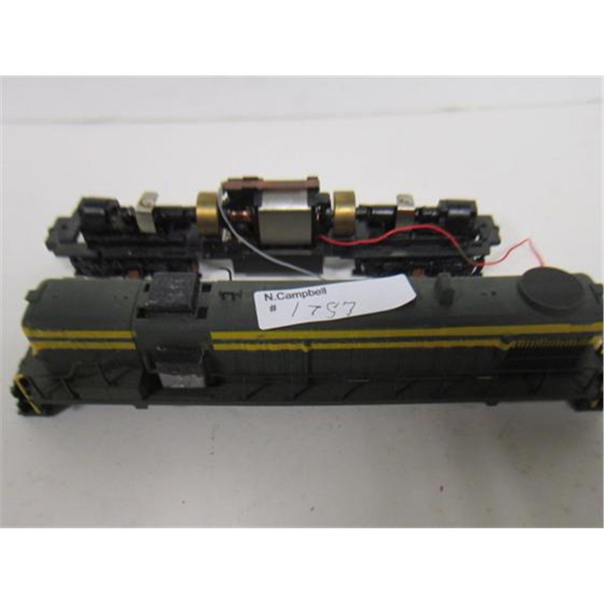 Train engine 1/4oz 7gm-dark green yellow stripe no name or number HO Scale top comes off7 1/4