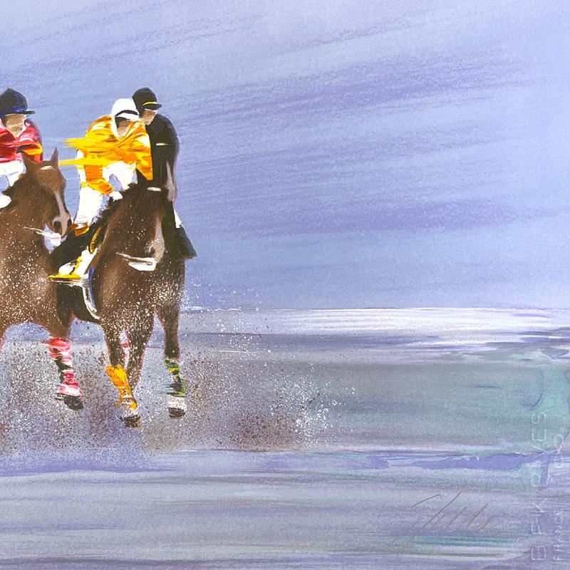 "Training on the beach" is a limited edition lithograph on paper by Victor Spahn. Printed at Art-Lithographies workshop in Paris, the piece is hand signed by the artist and comes with a certificate of authenticity. Measures approximately 17" x 23.5" (image).