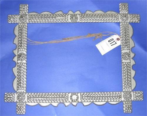 C1900 hand made Tramp Art picture frame, silver painted. 18.5"tx22"l. (l-480)