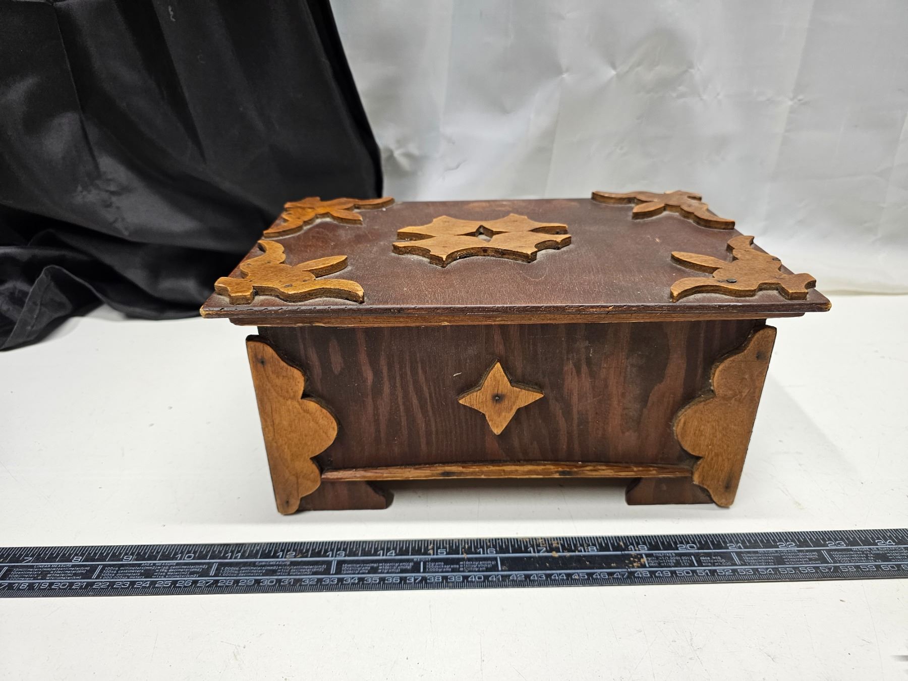 Tramp Art Wooden Box w/ Lid 10.5" x 7.5" x 5"