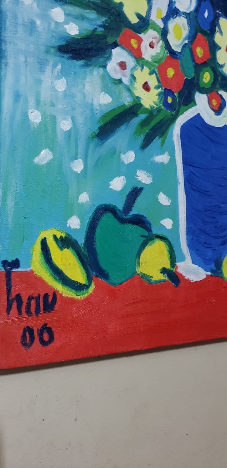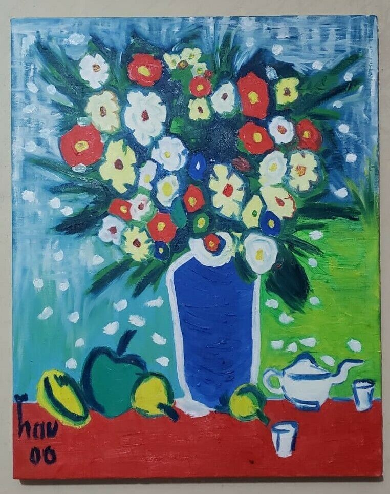 Description: Antiqeu VTG piece , Oil on canvas painting. Signed HAU. Master painter Tran Luu Hau (1928 - 2020). - Still Life