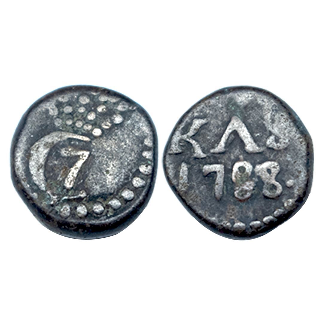 Tranquebar, Christian VII, Copper 4 Cash, 2.36Grms, AD 1788, issuer of Danish Royal Colony, OBV: Crowned C7 monogram, REV: Value and date. (KM # 155). Very Fine.