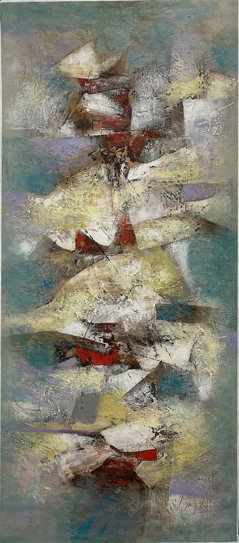 First-rate original acrylic on canvas. Hand signed by artist. This artwork comes rolled. Approximately 20x47 inches
