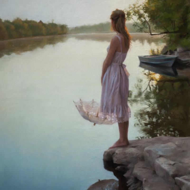 "Tranquility" is a limited edition giclee on canvas by Vicente Romero. The piece is hand signed, numbered, and come with a certificate of authenticity. Measures approximately 28" x 18".