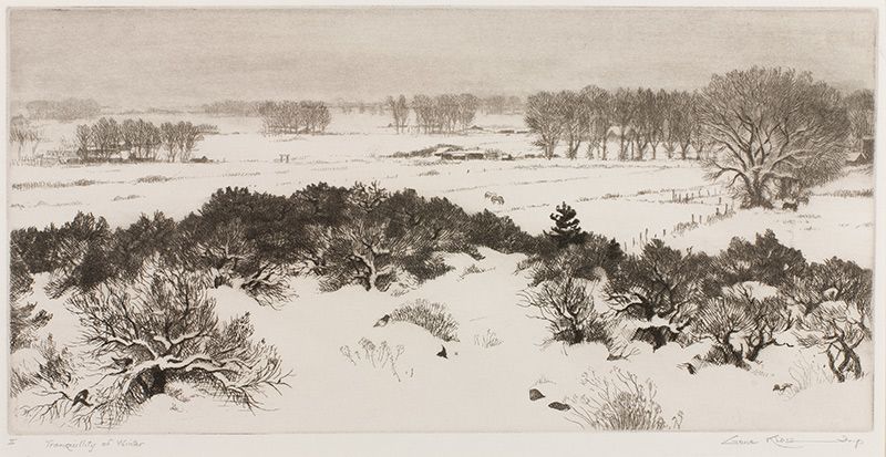 Gene Kloss, 1903 - 1996 NA | Signed: Gene Kloss Imp, l/r [in margin] II Tranquility of Winter, l/l [in margin] Media: Etching, unframed | Dimensions: 7 by 15 inches