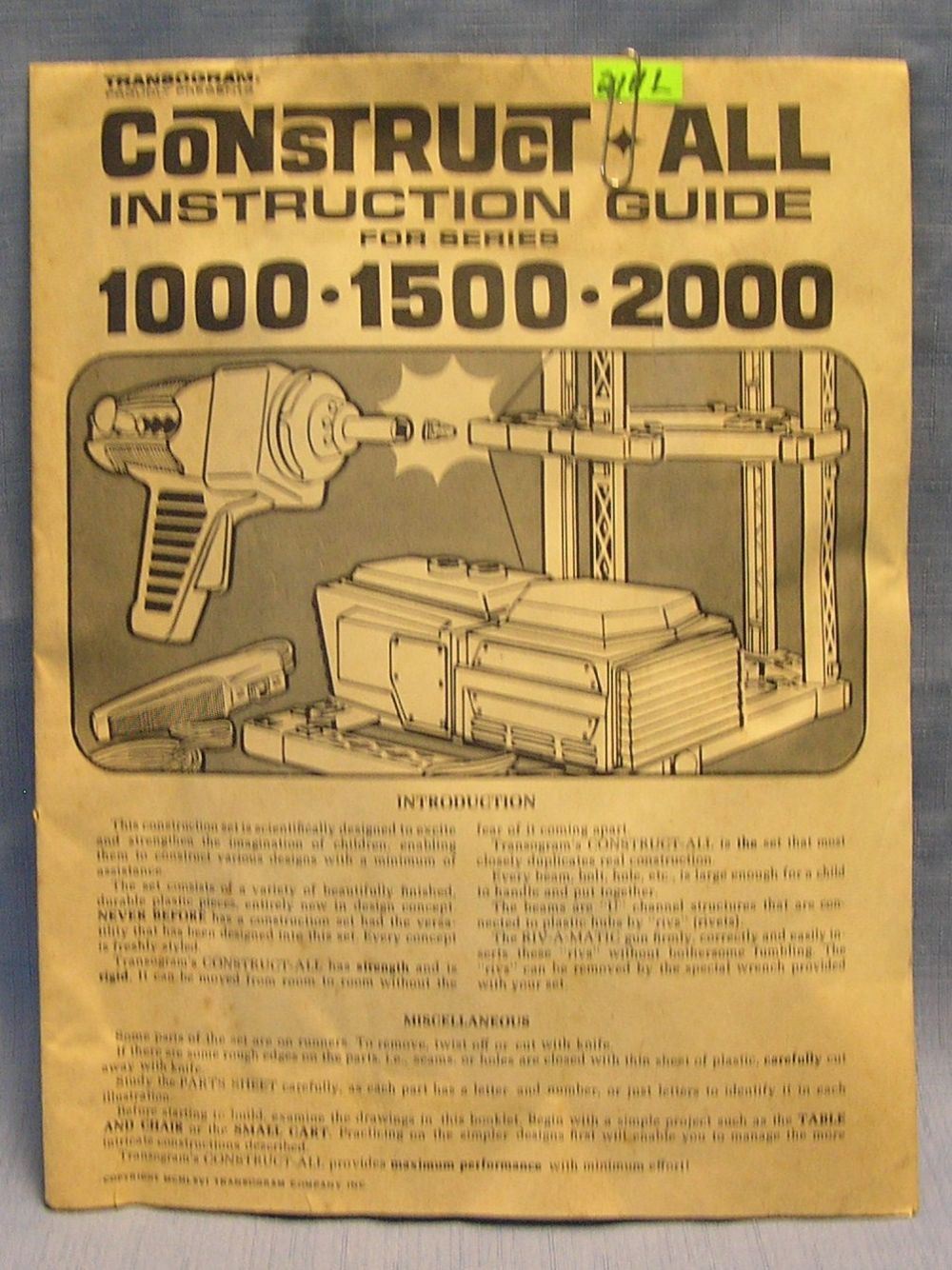 Vintage Trans-o-gram Construct All instruction guide and booklet est. value 25.00-35.00