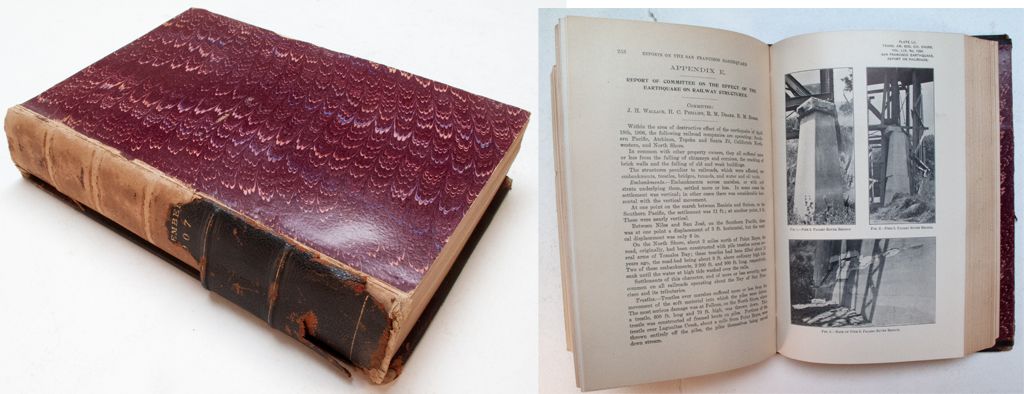 Vol. LIX. Issued in December, 1907. Includes information on the San Francisco Mint. 60 plates of various geological significance including earthquake damage (1907) to a number of San Francisco buildings. Notes that the San Francisco Mint (shown in plate XXXIV) survived the massive quake. Included is a paper titled: "The Effects of the San Francisco Earthquake of April 18, 1906, on Engineering Constructions." 581 pages. Front cover present but unbound, missing back cover and part of leather spine.City: San FranciscoCounty: San Francisco CountyState: CA