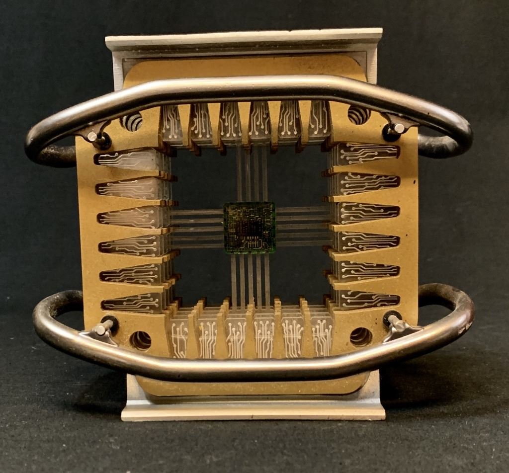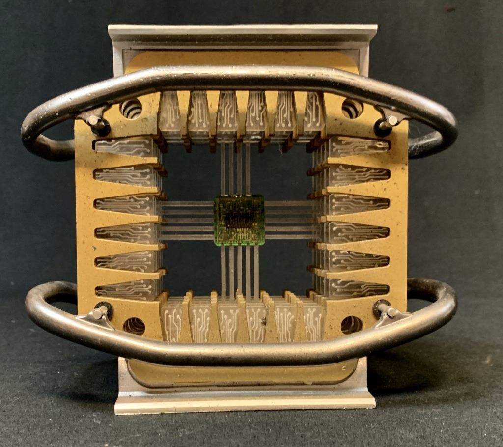 Original screen used hero memory chip used by "Will Caster", played by Johnny Depp in the science fiction thriller film Transcendence (2014) where a scientist's drive for artificial intelligence, takes on dangerous implications when his consciousness is uploaded into one such program. The film stars Johnny Depp, Morgan Freeman, Rebecca Hall, Paul Bettany, Kate Mara, Cillian Murphy, and Cole Hauser.