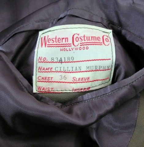 Agent Buchanan (Cillian Murphy) screen worn, hero, light brown two button custom made 'Western Costume Company' suit jacket and pants, light blue long sleeve button front 'Brooks Brothers' shirt, (size 15/33) navy blue silk with red and green paisley print 'Ralph Lauren' neck tie, brown smooth leather belt, and brown leather Oxford style 'To Boot New York' shoes. (size 9) Includes wardrobe tag!