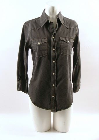 Bree (Kate Mara) screen worn, hero, dark grey long sleeve denim snap front collar Western style 'Civilionaire' shirt. (size S)