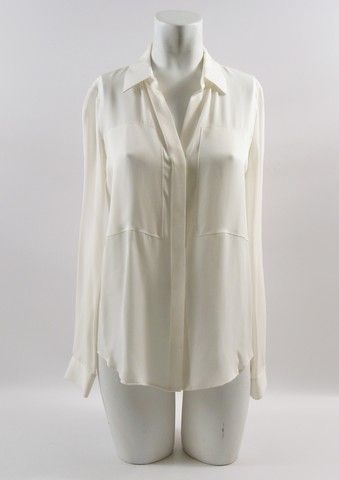 Evelyn Caster (Rebecca Hall) screen worn, cream long sleeve button front 'Theory' blouse. (size S)