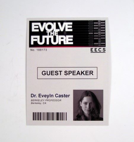 Evelyn Caster (Rebecca Hall) Evolve the Future Guest Speaker Dr. Will Caster ID badge.