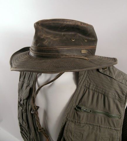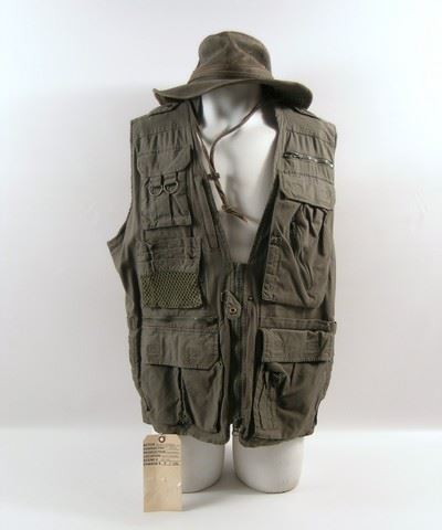 Joseph Tagger (Morgan Freeman) screen worn, hero, dark green with pockets on the front zipper front 'Fox Outdoor' hunting vest, (size M) and worn brown with chin strap 'Stetson' hat. Includes wardrobe tag!