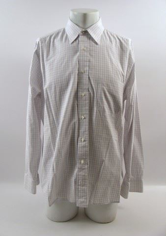 Joseph Tagger (Morgan Freeman) screen worn, hero, taupe zipper front two large flap pockets 'Faconnable' jacket, and white with blue, brown, and beige checker print pinstripes 'Gitman Gold' dress shirt. Includes wardrobe tag!