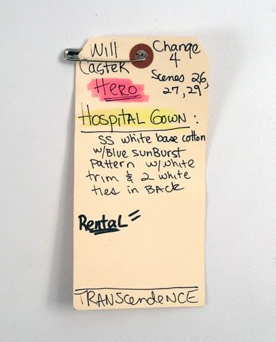Will Caster (Johnny Depp) screen worn, hero, white cotton with blue sunburst pattern with white trim and two white ties in the back hospital gown. Includes wardrobe tag!
