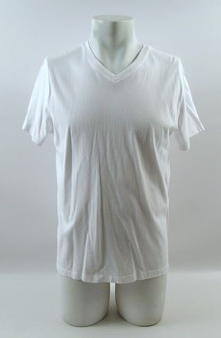 Will Caster (Johnny Depp) screen worn, white long sleeve button front 'John Varvatos' dress shirt and white cotton short sleeve v-neck 'Banana Republic' t-shirt. (size M)