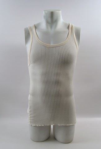 Will Caster (Johnny Depp) screen worn, hero, blue/grey fleck wool six button cardigan sweater, (size L) charcoal grey long sleeve cotton 'James Perse' shirt, (size 2) and cream teched ribbed cotton 'Zimmerli' tank top. (size M) Includes wardrobe tag!