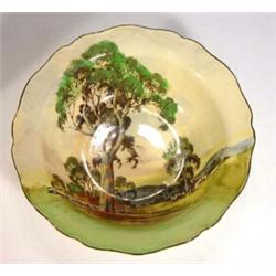 Transfer printed and hand coloured Doulton bowl, decorated with landscape scene, marks to base, 24cm diameter
